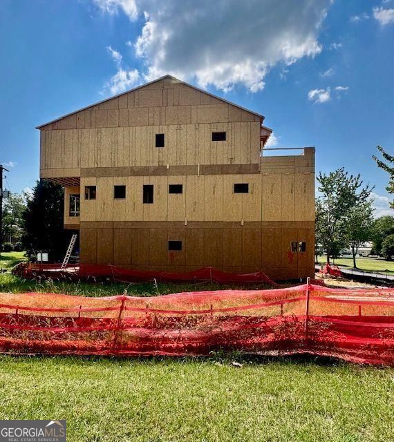 End Unit-New Construction Townhome in the Heart of Downtown Senoia. Experience elevated living in this beautifully designed three-story townhome by JW Collection-The Seneca, ideally located within walking distance to the shops, restaurants, and vibrant entertainment of Downtown Senoia-all just 40 minutes from Hartsfield-Jackson Atlanta International Airport. Spacious & thoughtfully designed Interiors over 3,200 square feet of expertly crafted living space, this townhome is perfect for those seeking a blend of luxury, comfort, and convenience. Street-Level Entry. Step inside from the charming streetscape into a private two-car garage with additional golf cart parking, a bedroom with full bath, and a flex space ideal for a home office, gym, or media room. Main Level - Designed for Entertaining..The open-concept second floor features a great room with a fireplace, dining area, and a keeping room that seamlessly flows to a covered 10' x 12' deck-perfect for indoor/outdoor entertaining. The gourmet kitchen is a chef's dream, complete with Stainless steel KitchenAid appliances, Gas cooktop with custom wood venthood, Quartz countertops, Walk-in pantry with custom wooden shelving and a stylish powder room completes this level. Top Floor - Private Retreat...Upstairs, the owner's suite impresses with a spa-inspired bath, featuring a large, tiled shower, dual quartz vanities, and a custom walk-in closet system. Also on this level are a secondary bedroom with full bath, a versatile media room, and a private 24' x 10' rooftop sky terrace with spectacular views of the Gin Property neighborhood and Senoia's historic charm. The home's classic exterior blends timeless elegance with modern materials, including brick and Hardie plank siding. Every detail reflects the JW Collection's commitment to quality craftsmanship and design excellence. Don't miss your opportunity to own a luxury townhome in one of Georgia's most picturesque and walkable communities. Interior photos shown are representative of finishes from a similar community and not of the actual unit. Home is currently under construction.