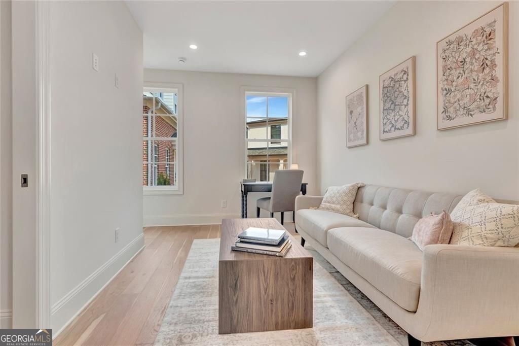The Cottages at Gin Property. Only 2 remaining! Just 2 blocks from Main Street in Senoia. This expertly designed cottage features 3 bedrooms and 2.5 bathrooms overlooking landscaped courtyard with firepit. Inside is a light filled open main level with seating area, eating area and kitchen. The eating area is nestled in the heart of the main floor for an intimate dinner with friends. Main level complete with a primary suite, full bath and large closet. Second floor reveals two bedrooms with plenty of closet space and shared bath with tile shower. Spray Foam insulation in the attic ceiling. Stackable washer & dryer closet on main floor. Dedicated parking for one car and one golf cart with convenient street parking for guest. The community of homes features a quintessential street scape with sidewalks throughout and is located right beside the Historic town of Senoia with boutique stores, restaurants, and the home of several community gatherings, events, and the unique Alive After Five' monthly event.