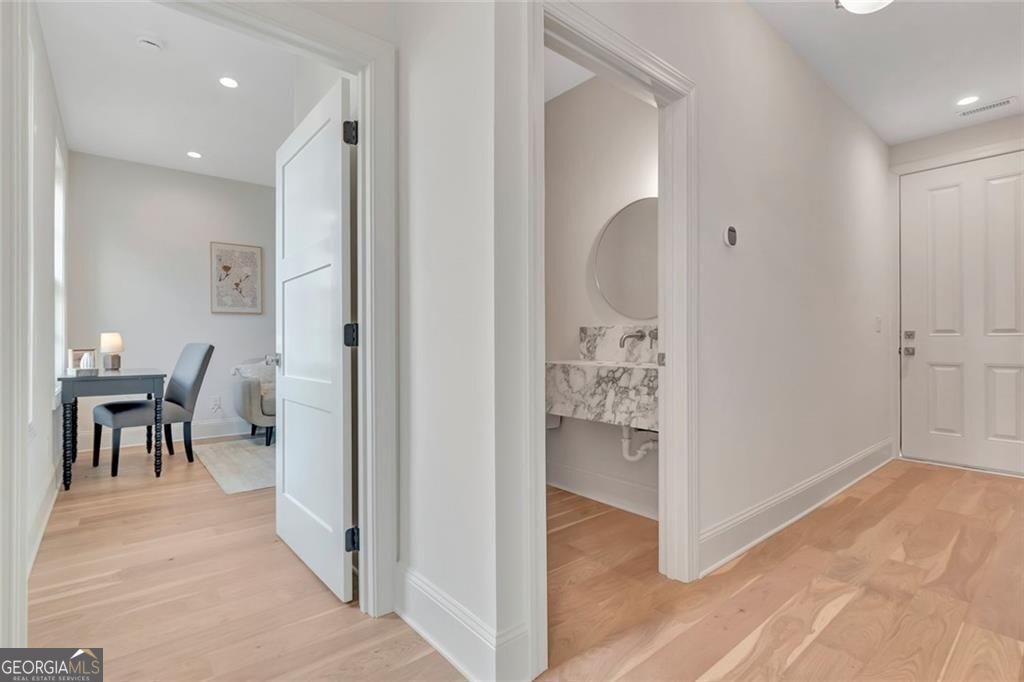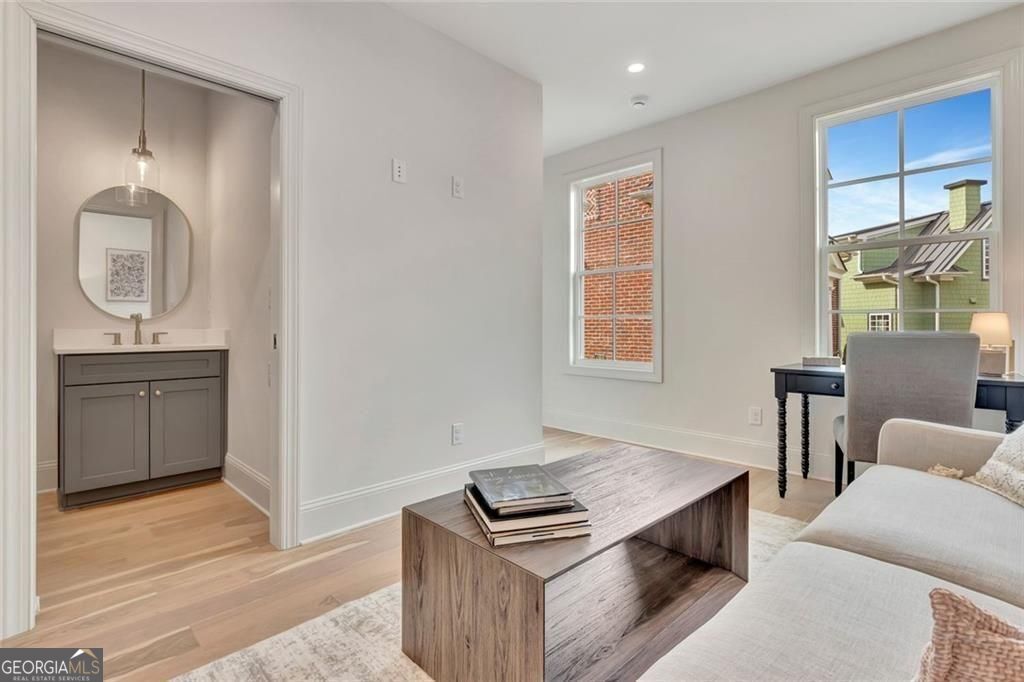 This charming, new construction 3-bedroom, 2.5-bath cottage home in Gin Property offers a perfect blend of modern comfort and small-town charm. Overlooking a beautifully landscaped courtyard with a cozy firepit, this home features a light-filled open main level that includes a comfortable seating area, dining space, and kitchen. The dining area is thoughtfully positioned at the heart of the main floor, creating a welcoming and intimate space for entertaining friends. Also on the main level is the spacious primary suite, complete with a large closet and full bath, along with a convenient stackable washer and dryer closet. Upstairs, two additional bedrooms provide ample closet space and share a stylishly tiled bath with a walk-in shower. The home is energy efficient with spray foam insulation in the attic. Parking is made easy with a dedicated space for both a car and a golf cart, and there's plenty of street parking for guests. Located in a picturesque community with sidewalks and a quaint streetscape, this home is just steps from the historic town of Senoia. You'll love the convenience of nearby boutique stores, restaurants, and the vibrant "Alive After Five" monthly event, along with various community gatherings throughout the year. This home offers the perfect setting for enjoying both a modern lifestyle and the charm of small-town living. Pictures and video are from a sold home. Don't miss this opportunity at The Cottages at Gin Property