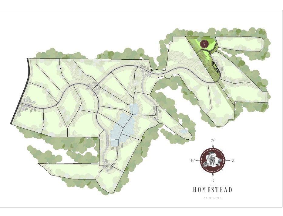 Unique 6.91 acre interior estate lot in exclusive estates gated enclave at The Homestead at Milton surrounded by tree lined views and offering a expansive building area on this lovely rear cul-de-sac estate homesite. Formerly a meticulously maintained golf course with unparalleled beautiful parklike grounds exclusive estates, there is no place like home in The Homestead at Milton. Once a meticulously maintained golf course, The Homestead at Milton now offers 34 exclusive estate lots in the heart of beautiful Milton - close to top schools, excellent dining, shopping, parks, walking trails, and convenient commutes. Now opportunities are waiting for your new custom dream home estate on this special interior estate lot where you can bring your own plans and approved builder to submit for community approval into the Builder Group or build with our acclaimed architectural, design and award-winning building teams already involved the community. This 6.91-acre interior estate lot is located within the exclusive, gated community of The Homestead at Milton and offers tree-lined views with an expansive building area. Previously part of a meticulously maintained golf course with park-like grounds, The Homestead at Milton presents an exceptional opportunity to create a custom home in this prestigious enclave. The community features 34 exclusive estate lots situated in the heart of Milton, providing convenient access to top schools, fine dining, shopping, parks, walking trails, and major transportation routes. Prospective homeowners are invited to bring their own plans and approved builder for submission to the Builder Group or collaborate with the community’s renowned architectural, design, and award-winning construction teams. This unique cul-de-sac estate lot provides an optimal setting for your new custom dream residence.