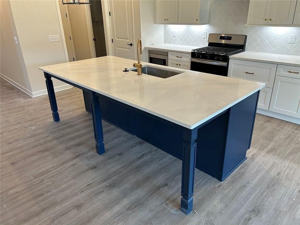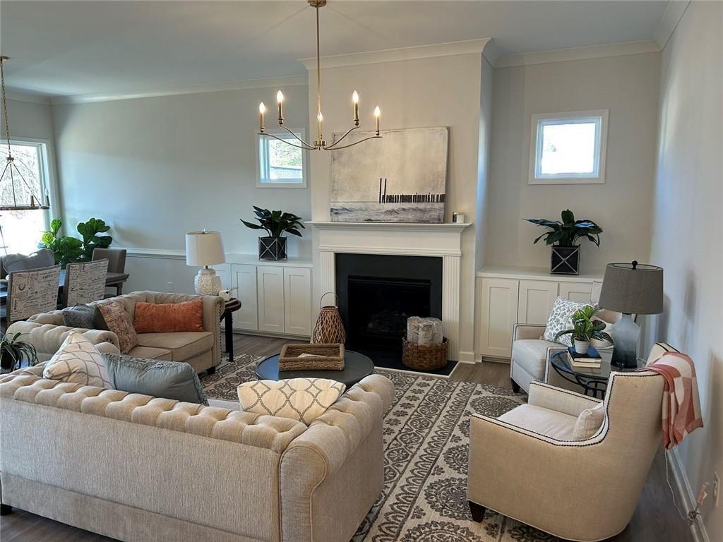 Don't miss out only 5 homes remaining-Welcome to beautifully crafted Wildwood floor plan. This true ranch plan features easy one-level living with a bright, open gourmet kitchen w/ a grand island. Stainless steel appliance package. Beautifully designer cabinets and countertops throughout. The spacious owner suite and one secondary bedroom are conveniently located on the main floor. Owners' suite comes fit with a stunning double vanity, large zero-entry designer tile shower, and incredible tile flooring. Convenient features of the home include hardwood flooring, oversized entry ways, high ceilings, cabinet microwave, oversized covered patio, rocking chair front porch, luxurious lighting package, easy access floor plan, HOA maintained landscaping, and weakly trash pick-up. All located on a beautifully landscaped level lot. You will love this gated, low-maintenance, active adult community, located close to sought after downtown Woodstock, and nearby Towne Lake, with ideal shopping and dining. Model Homes Hours: Appointment Only home is ready now