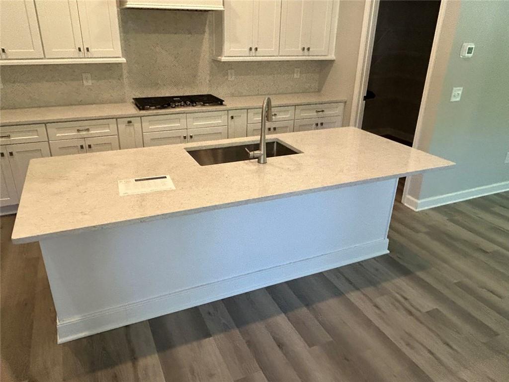 Don't miss out only 5 homes remaining-Welcome to the luxurious Ridgewood floor plan. This plan features a bright, open gourmet kitchen w/ a grand island. Stainless steel appliance package includes oversized cooktop and oven. Beautifully designed cabinets and countertops throughout. The spacious owner suite and one secondary bedroom are conveniently located on the main floor. Owners' suite comes fit with a stunning double vanity, large zero-entry designer tile shower, and incredible tile flooring. Upstairs features the third bedroom w/ a full bath and large game room .Convenient features of the home include hardwood flooring throughout, oversized entry ways, high ceilings, cabinet microwave, oversized covered patio, rocking chair front porch, luxurious lighting package, easy access floor plan, HOA maintained landscaping, and Weekly trash pick-up. All located on a beautifully landscaped private cul-de-sac lot. You will love this gated, low-maintenance, active adult community, located close to sought after downtown Woodstock, and nearby Towne Lake, with ideal shopping and dining. - Home is ready